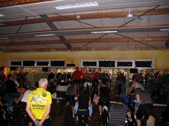 Op afbeelding 147 zie je wederom een foto in de lengterichting van de groepsruimte. Je ziet dezelfde geel – oranje muur. In die muur zit een groene deur. Dit geeft toegang tot de douches. Maar, op afbeelding 147 zie je tevens de ‘overgang’ naar de rest van de fitness ruimte. Je ziet een witte loodrechte balk met daarop een zwarte luidspreker. Da’s de overgang naar de fitnessruimte en het bargedeelte.